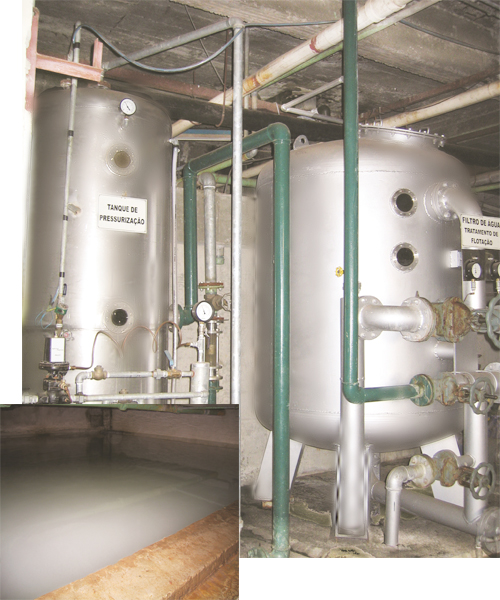 Sistema projetado para economia de água industrial através de processo de flotação, separação e filtração dos sólidos em suspensão e materiais aderentes remanescentes das peneiras estáticas ou rotativas. Este conjunto garante total qualidade de água para reuso industrial.