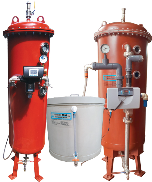 O Filtro de Carvão Ativo ZEW MKF-CA elimina o gás clorídrico e a coloração proveniente de material orgânico, aumentando a vida útil das resinas de troca iônica e tornando a água adequada para fins industriais. O Abrandador ZEW MKA Automático elimina a presença de dureza total através da passagem da água por resinas de troca iônica, retendo os sais de cálcio e magnésio, garantindo água filtrada de excelente qualidade.